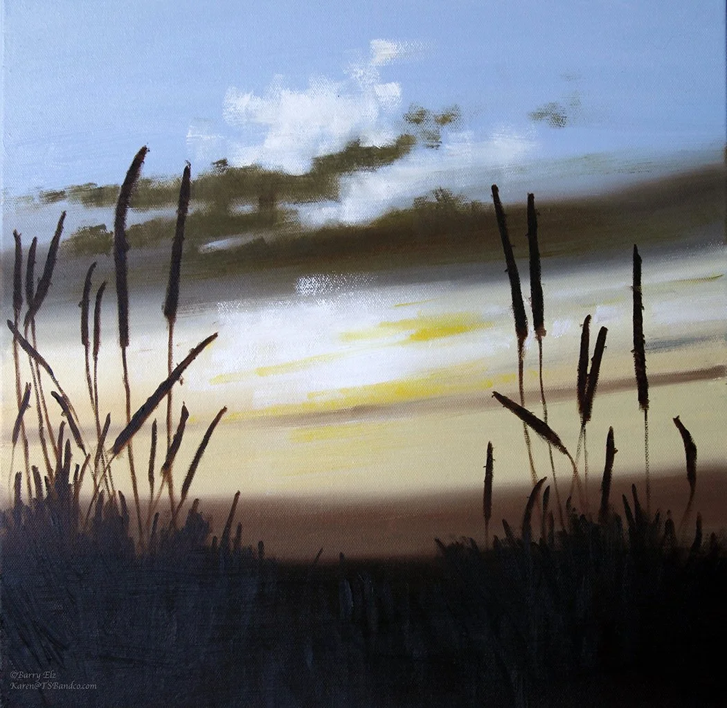 "Sunrise Cattails" (16"x16") 2025